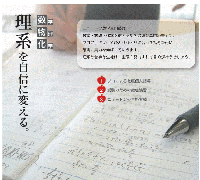 ニュートン数学専門塾は30年の実績があり、数学・物理・化学を鍛えるための理系科目専門の塾です。